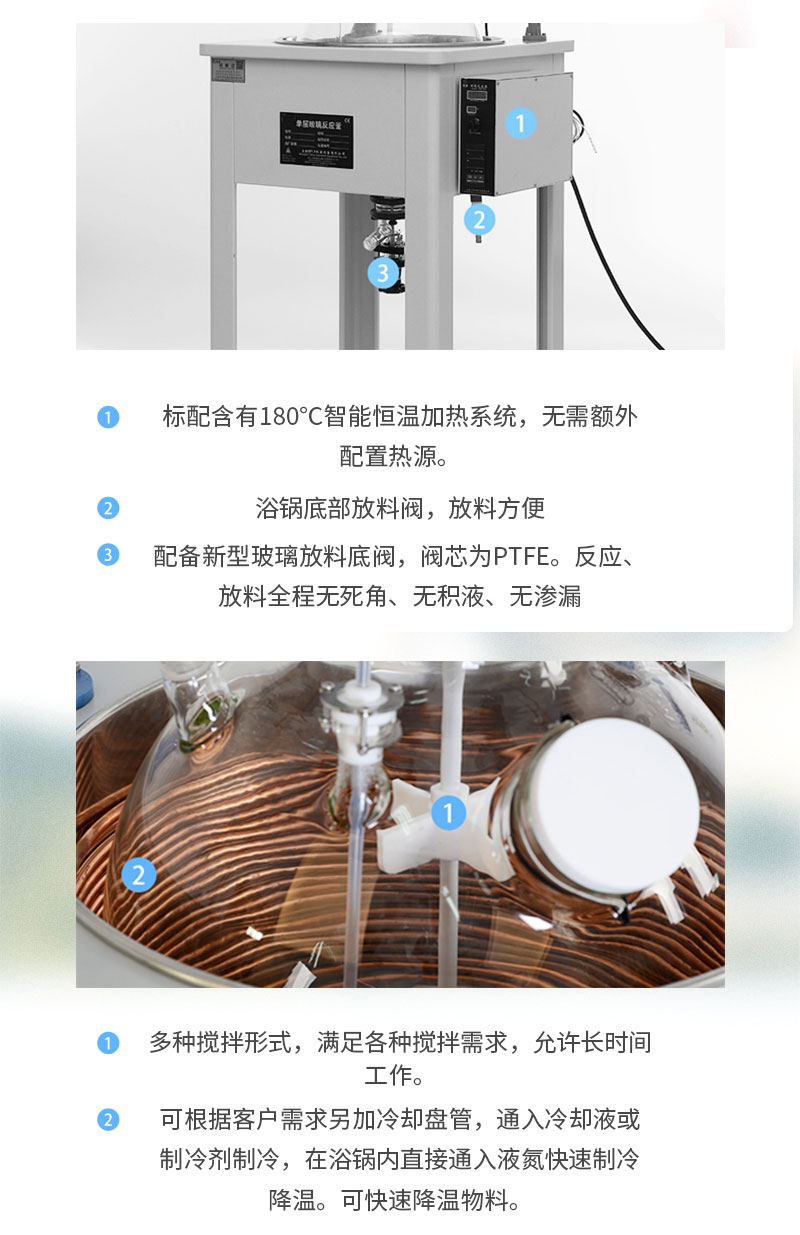 噴四氟型單層玻璃反應(yīng)釜,是內(nèi)層放置反應(yīng)溶媒可做攪拌反應(yīng),夾層通過冷熱源(冷凍液、水、導(dǎo)熱油)循環(huán),可使內(nèi)層實(shí)現(xiàn)恒溫加熱或冷卻反應(yīng),可控制反應(yīng)溶媒的蒸餾與回流;是現(xiàn)代合成化工、生物制藥和新材料制備的理想試驗(yàn)、生產(chǎn)設(shè)備。
